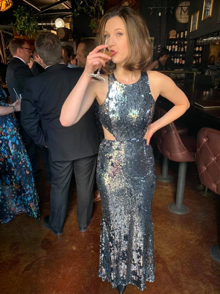 If you’re wondering, the dress is from Rent the Runway. I really wanted to emulate a disco ball for my look that night. Did I succeed?
